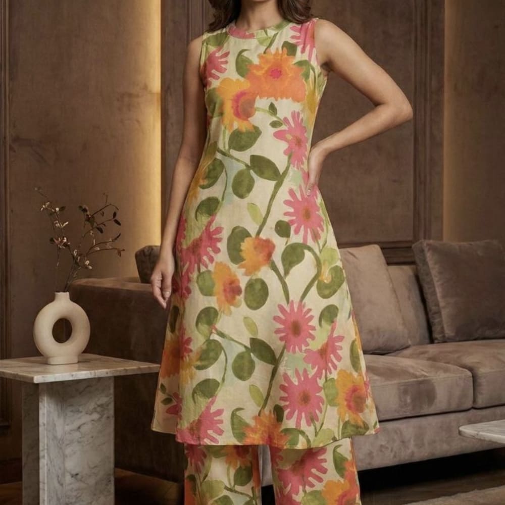 Cream, Pink, Orange, Green Kurta and Palazzo Set