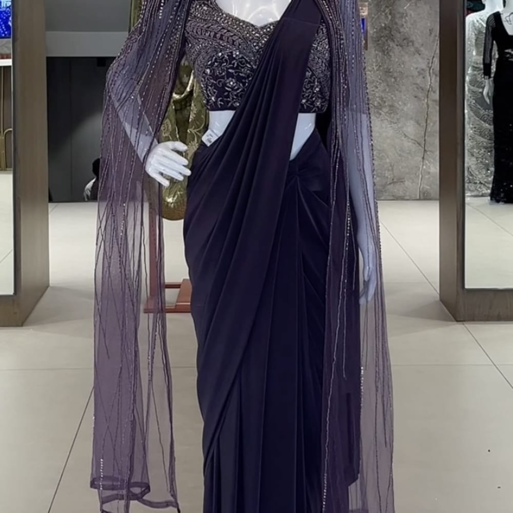 Deep Purple Saree with Blouse and Cape