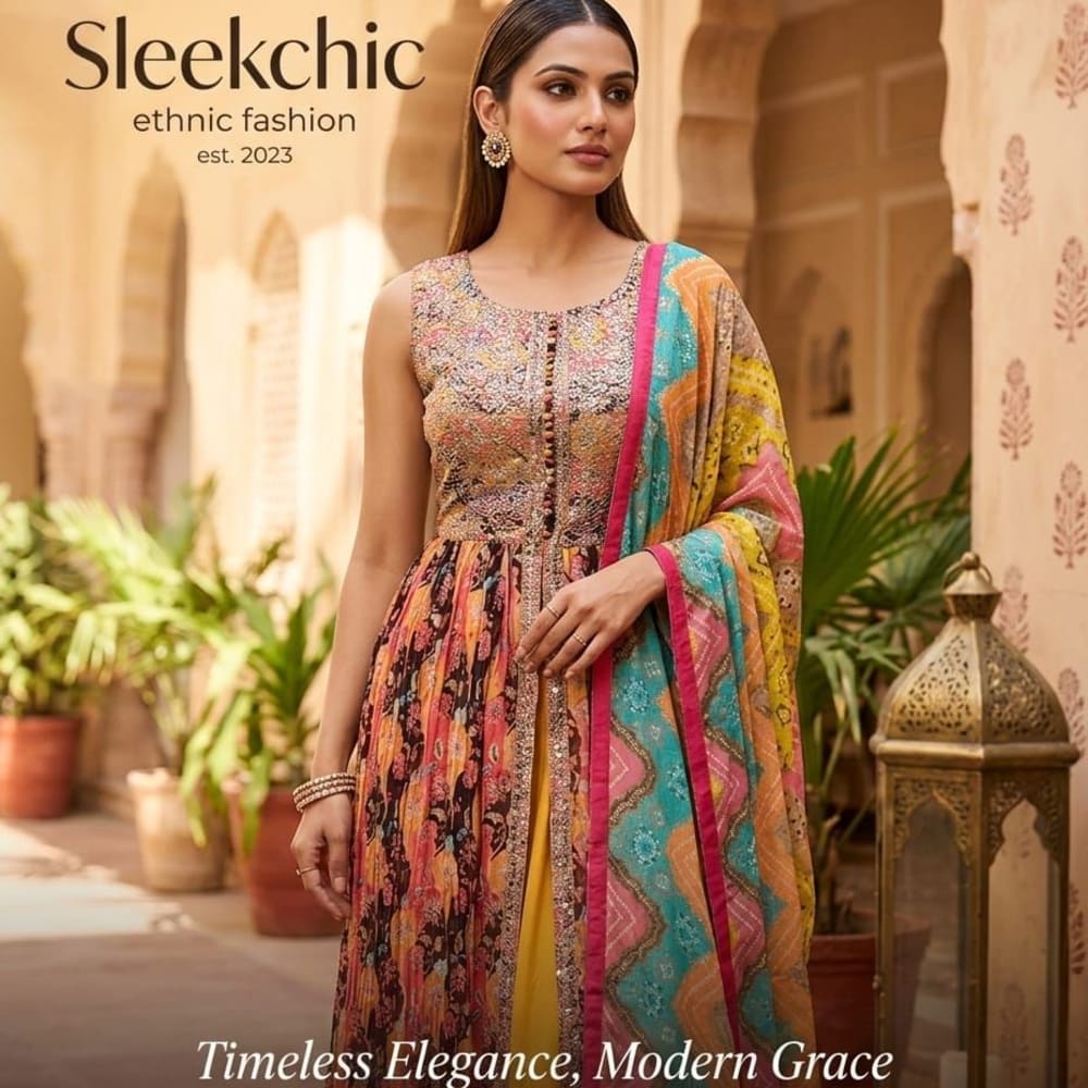 Yellow, Orange, Pink, Teal, Black, Multicolor Anarkali Suit