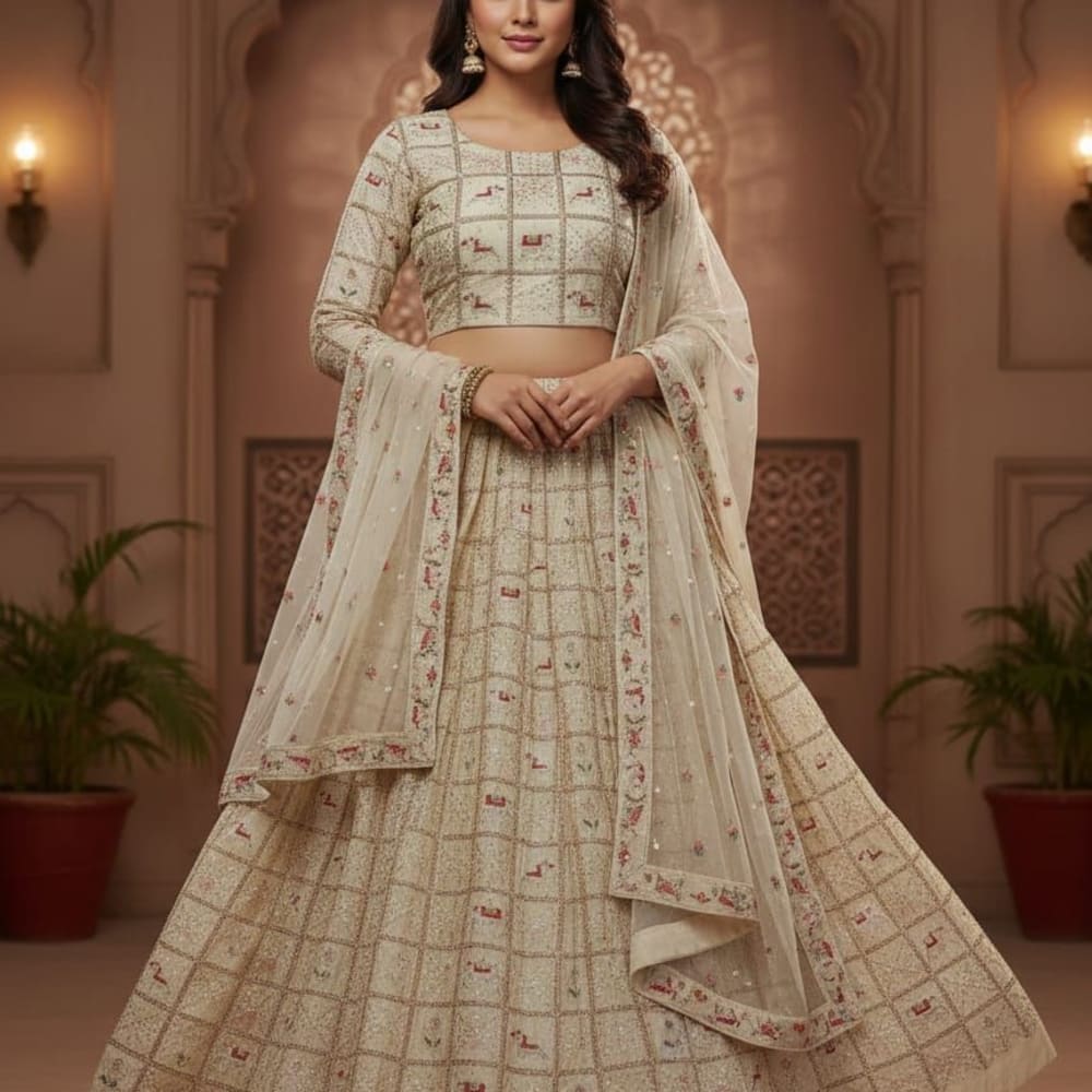 Cream, Beige, Red, Green, Gold Lehenga Choli