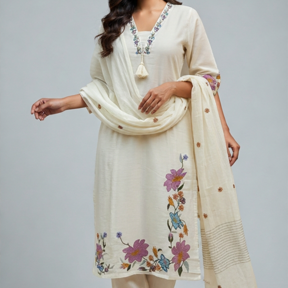 Off-white, Purple, Blue, Green, Orange, Yellow Kurta Set with Dupatta