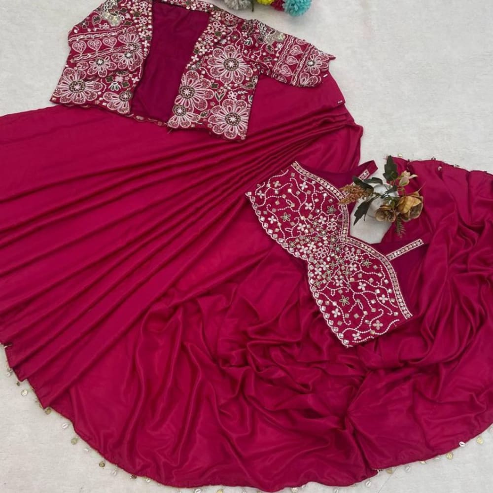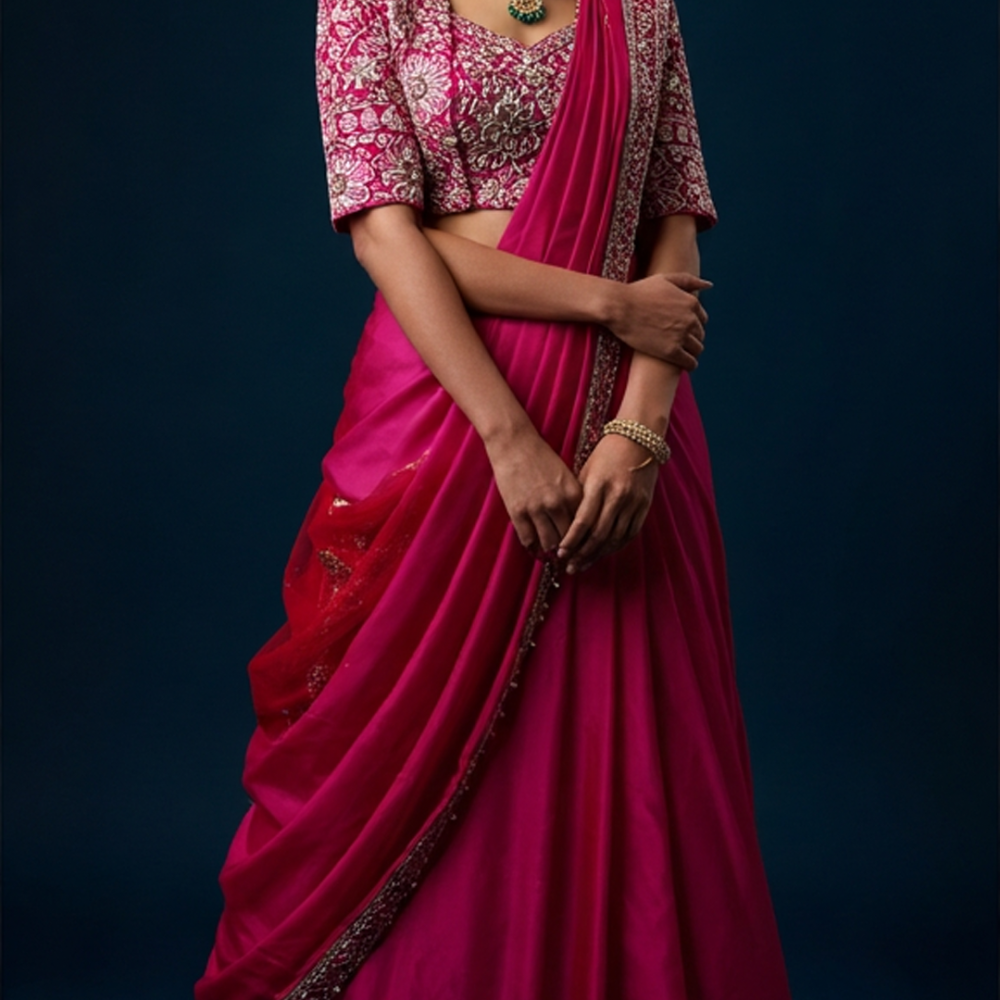 Deep Pink, White, Silver, Gold Saree with Blouse and Jacket