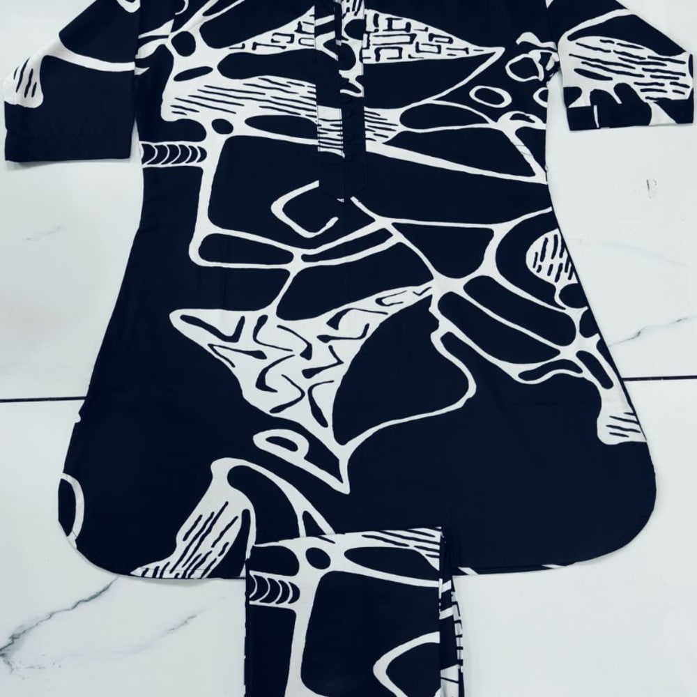 Black and White Kurti and Trousers Set