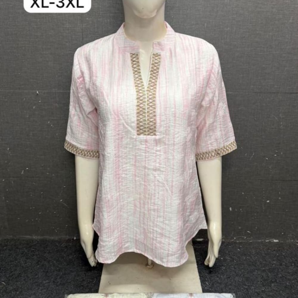 Pink and White stripes, Beige embellishments Tunic Top