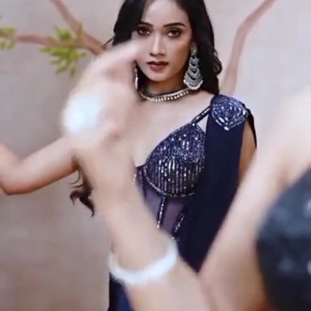 Black, Navy Blue Saree, Corset Top