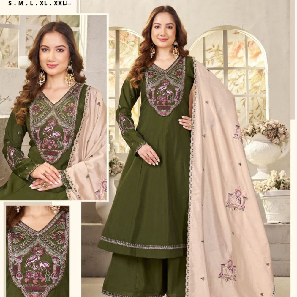 Olive green, beige, pink, purple Kurta with palazzo and dupatta