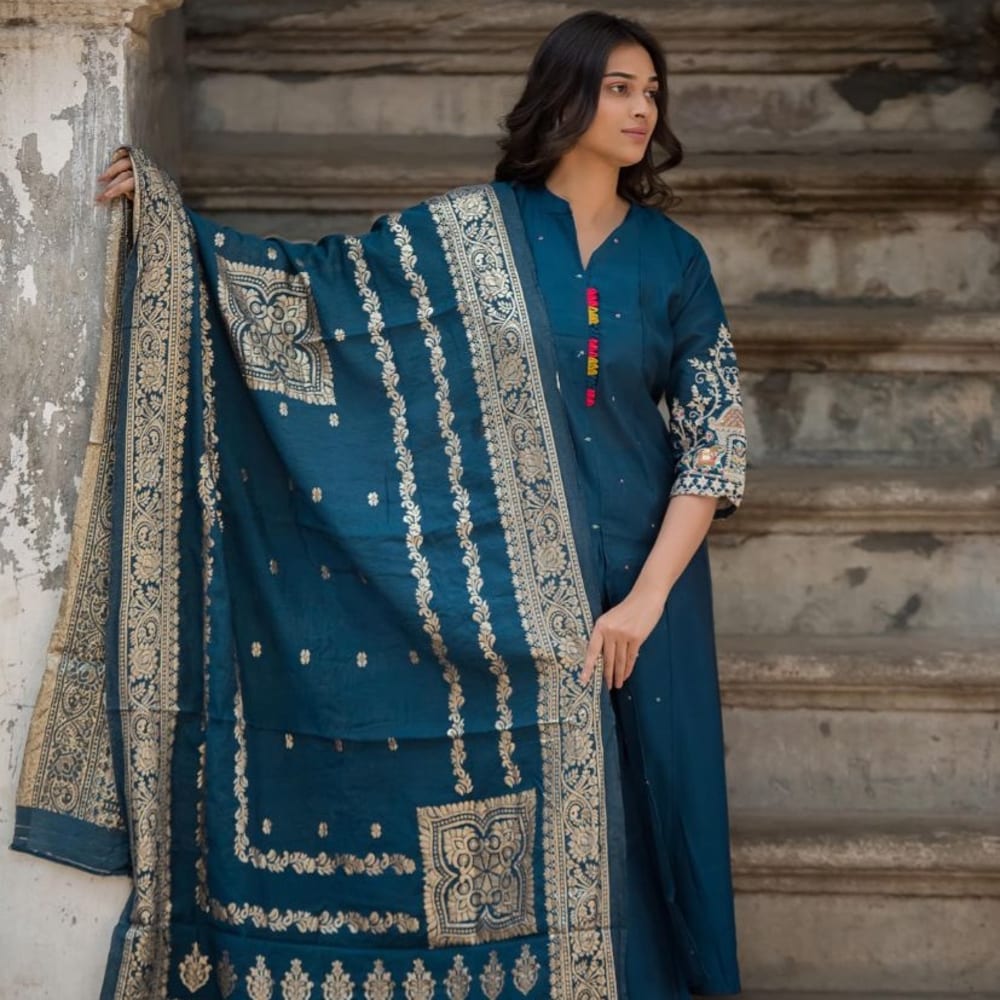 Teal and Gold Salwar Kameez with Dupatta