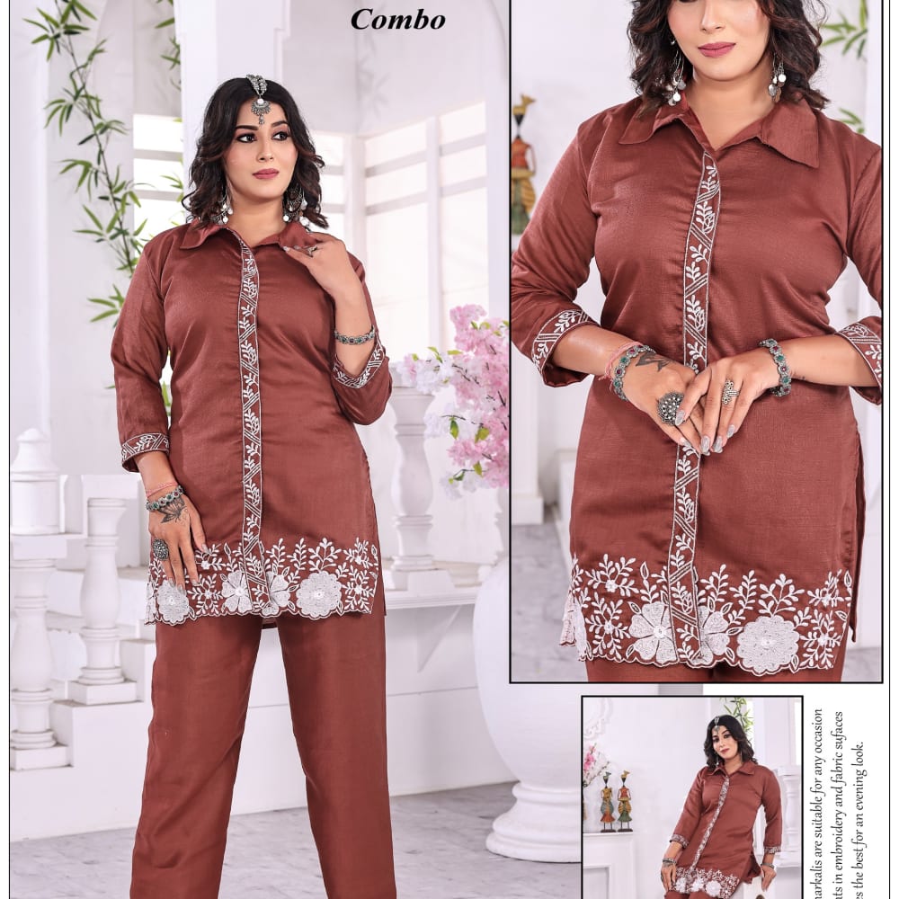 Brown and White Kurti and Pants Set