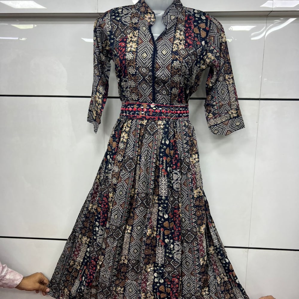 Navy blue, brown, beige, red Dress