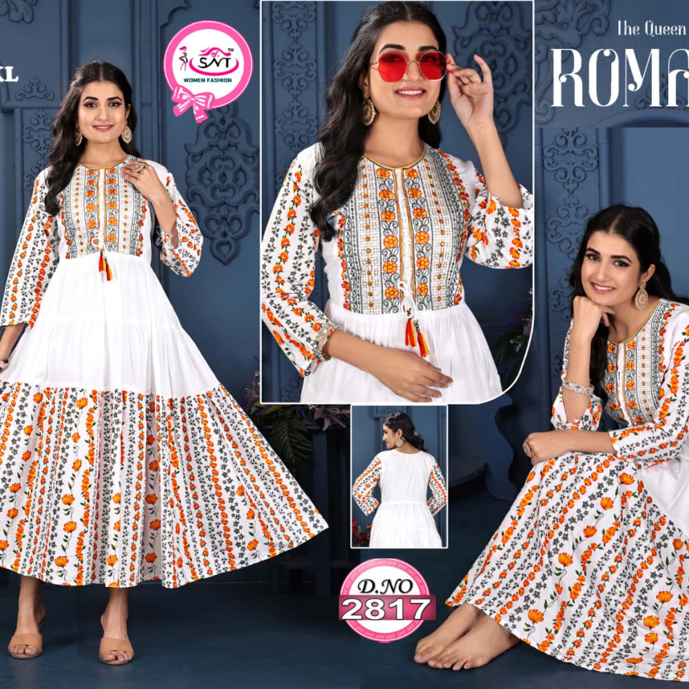 White, Orange, Black, Gold Dress