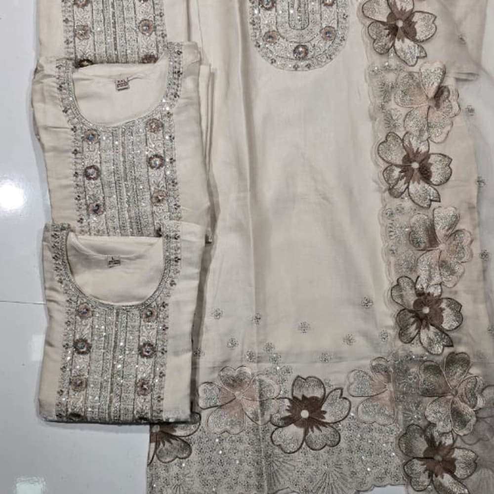 Ivory, Silver, and Brown Salwar Kameez Suit