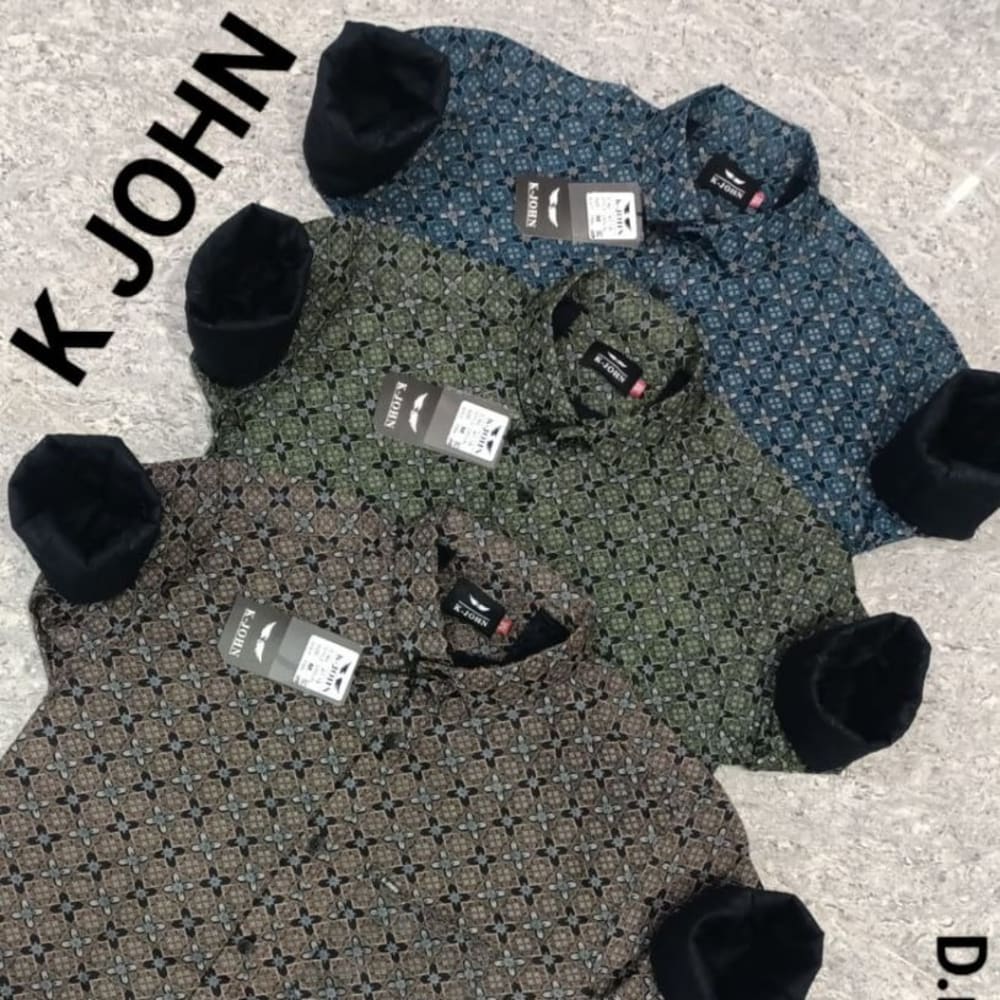 Various shades of blue, green, and brown with black cuffs Shirt