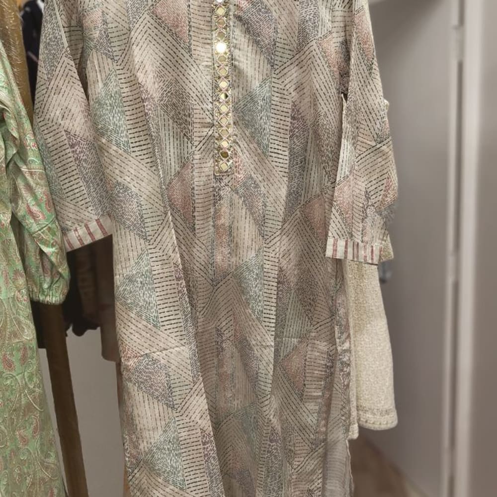 Cream, Pink, Green, Gray Kurta