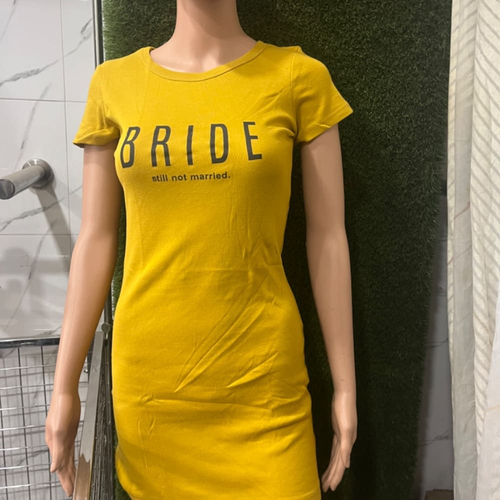 Mustard yellow with black text T-shirt dress
