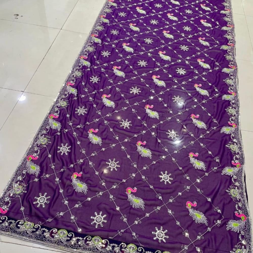 Purple, Pink, Green, Silver, Black Saree