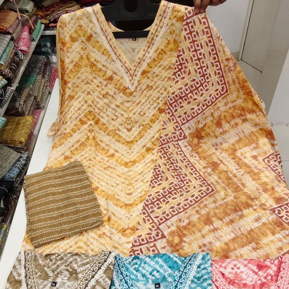 Warm tones of yellow and brown with hints of red. Kurta with matching bottoms