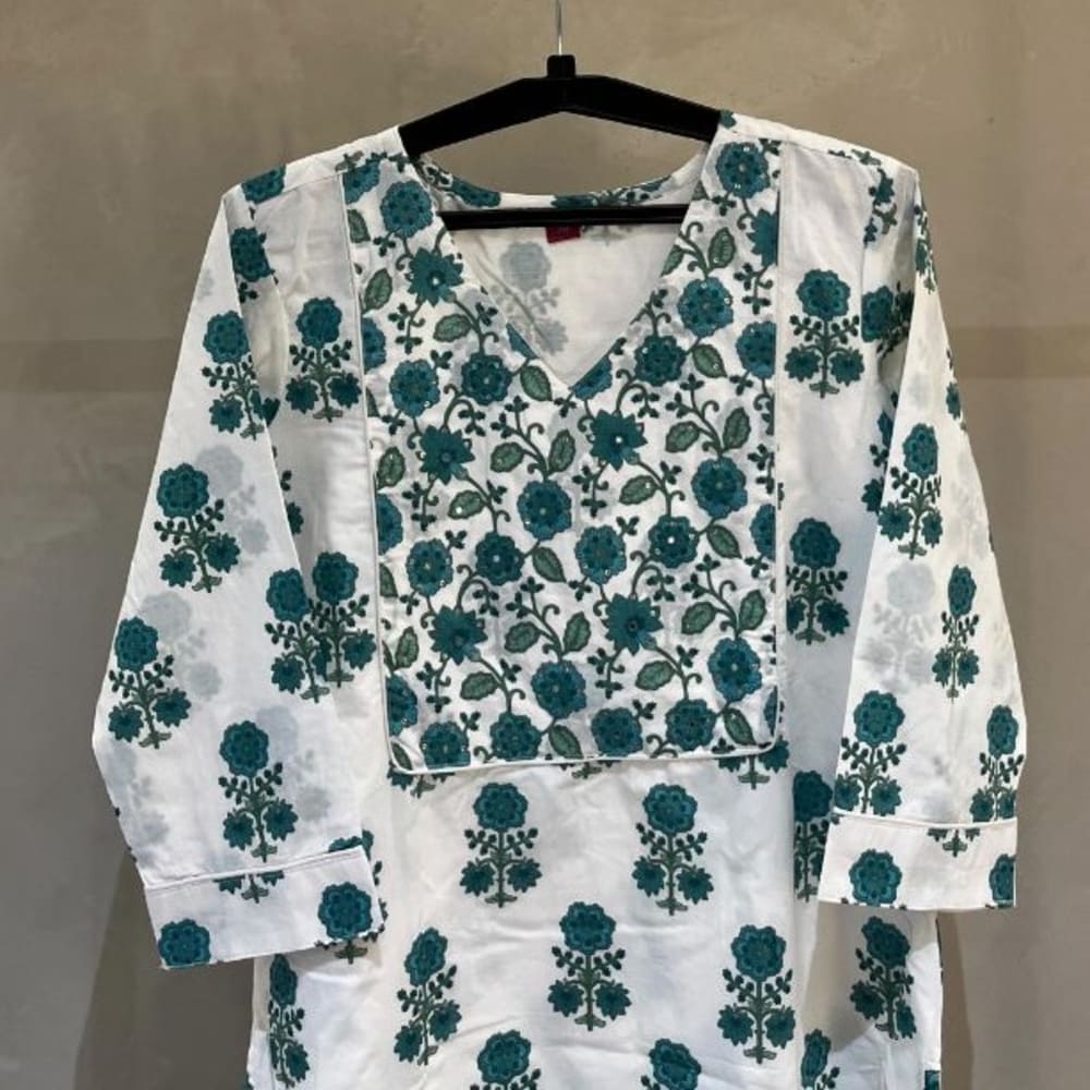 White and Teal Kurti
