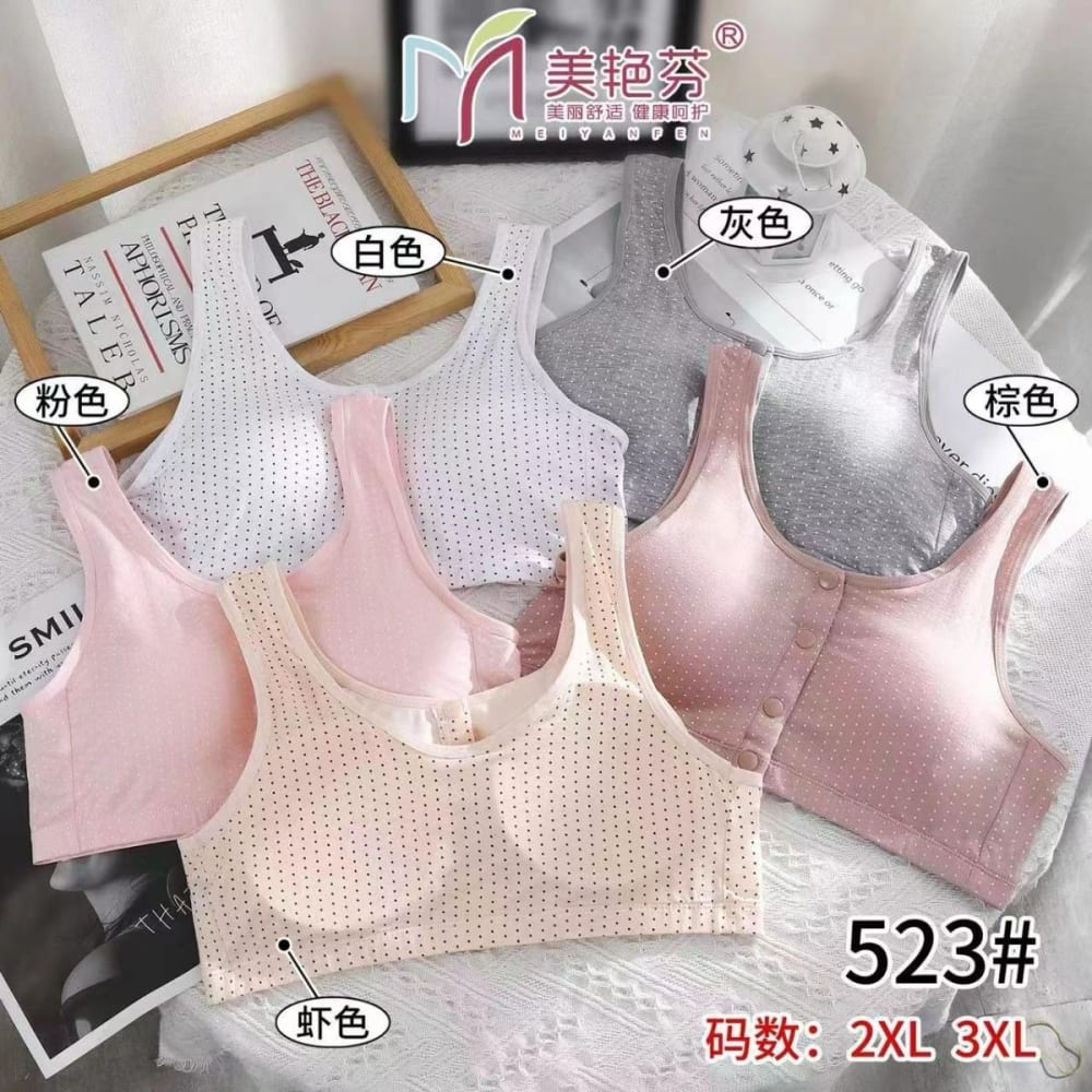 White, Pink, Gray, and Peach with small black polka dots Sports Bra