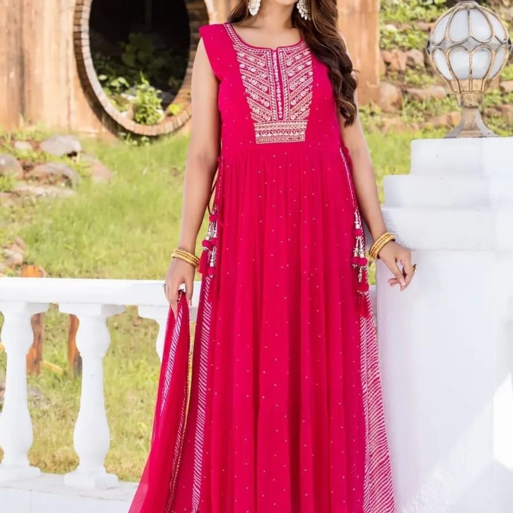 Magenta, White, and Gold Anarkali Dress