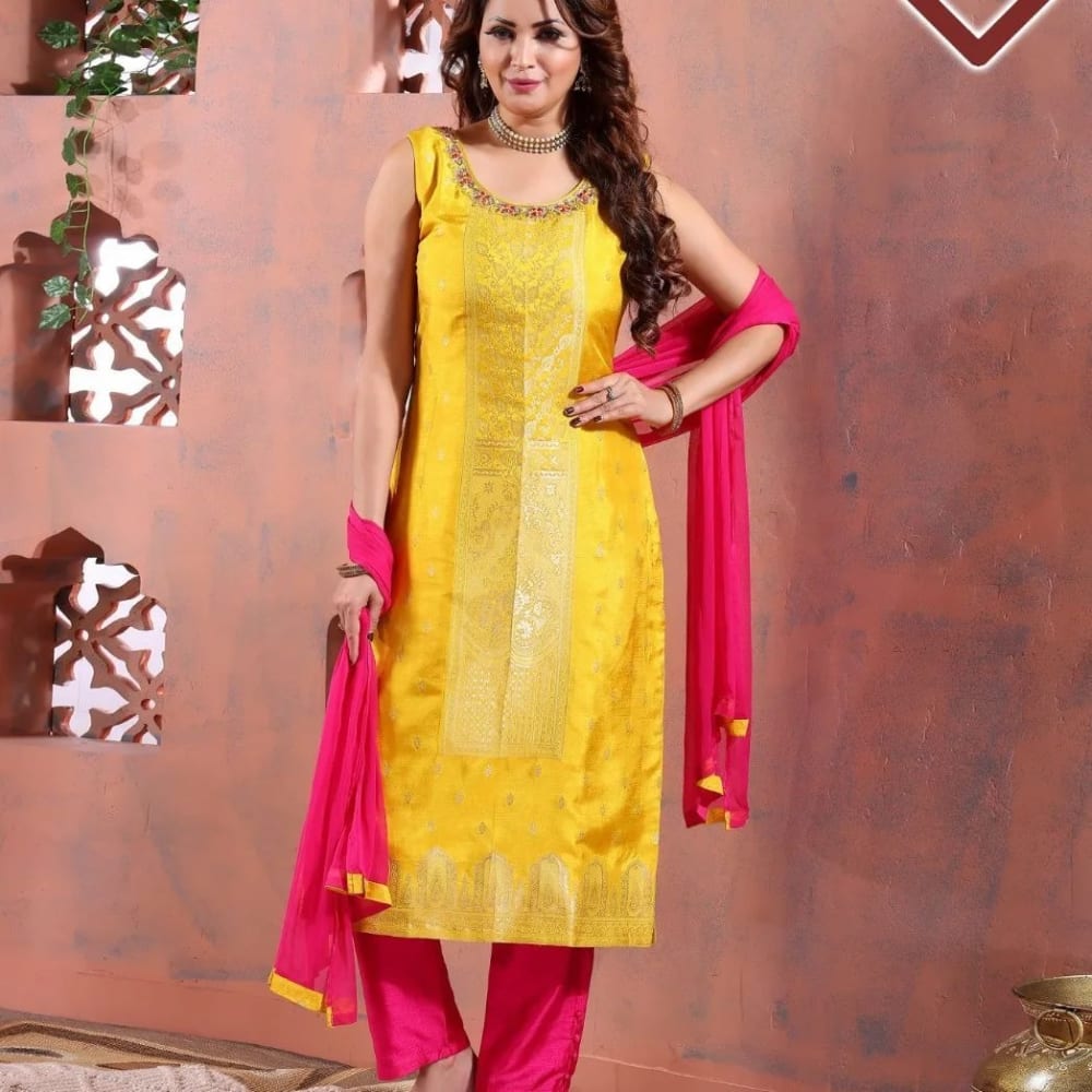 Yellow and Pink Salwar Kameez
