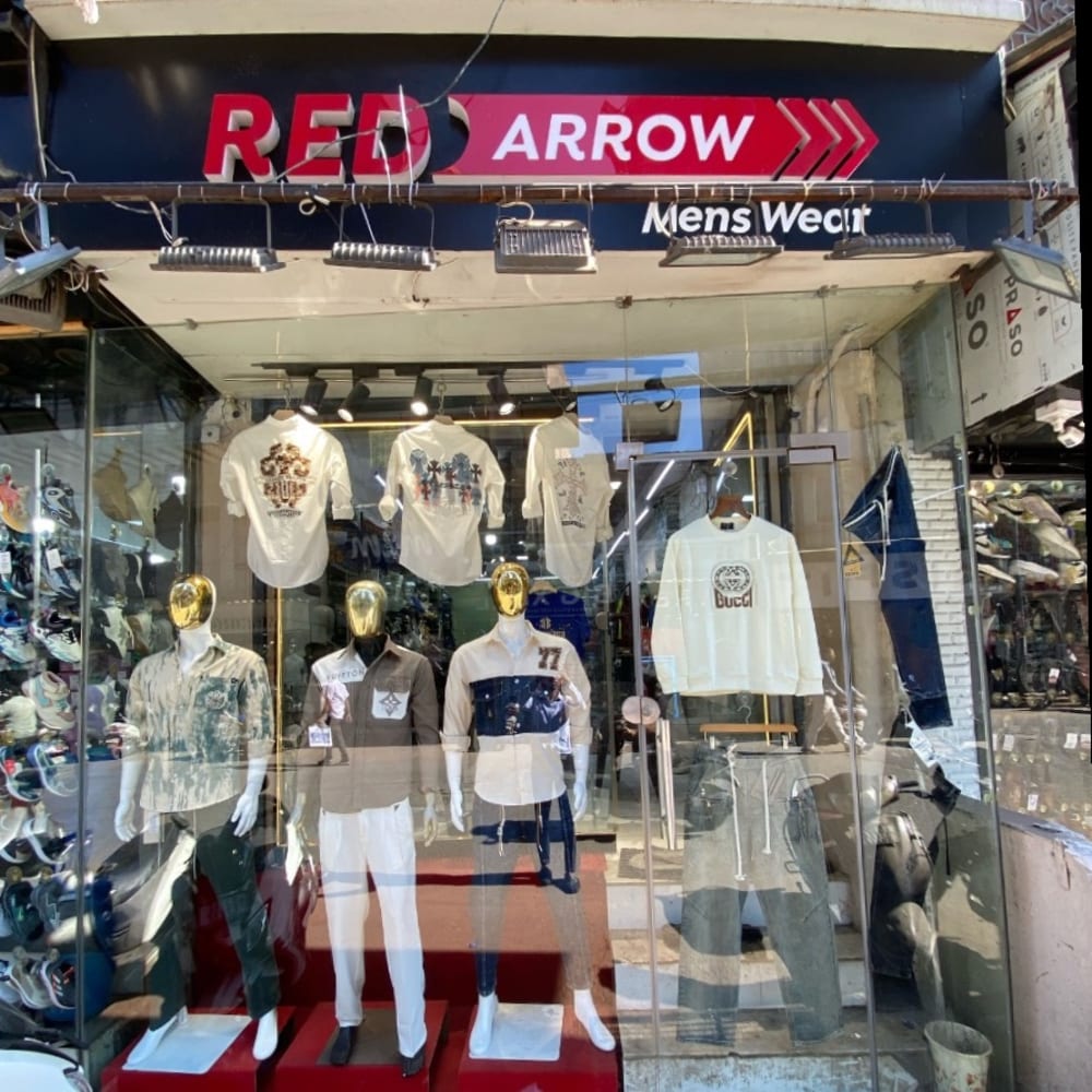 Various, including white, khaki, dark purple, and olive green shirts, each with embroidered embellishments in contrasting colors. Shirts